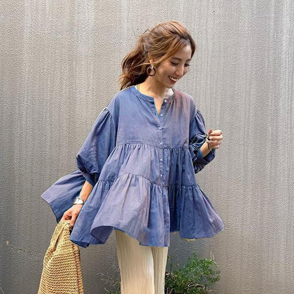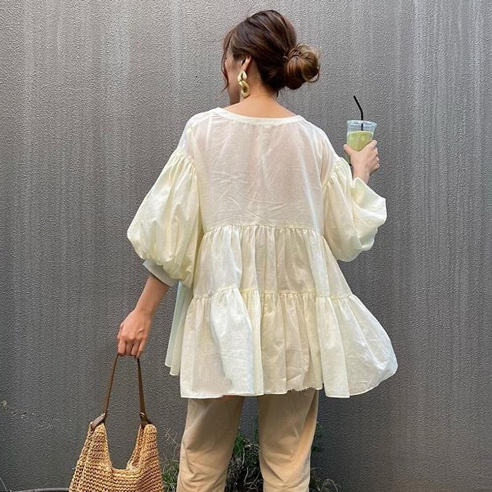トップス レディース シャツ きれいめ 大人 可愛い ふわふわ ブラウス くすみカラー 無地 ホワイト アーミングリーン ライトパープル ブルー ブラック 体型カバー 普段使い ふんわり フレア ゆったり バルーン袖 襟なし ボタン取り外し 春 夏 秋 カラーバリエーション豊富 学生 OL ママ マタニティ 通学 通勤 公園 お出かけ デート おしゃれ ガーリー ラフ ワンサイズ 抜け感 着回し 万能アイテム 5分袖 薄手 羽織 春カラー夏カラー秋カラー 10代 20代 30代 40代 50代