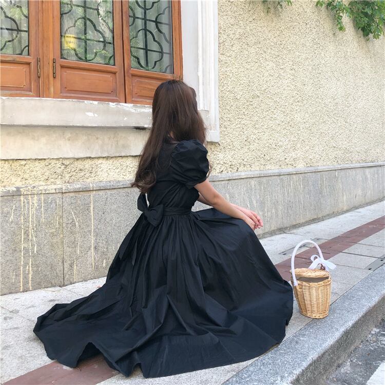 ワンピース レディース フレアワンピース ミモレ丈 ひざ丈 袖あり パフスリーブ ボリューム袖 バックリボン フレア ウエストマーク ウエストリボン スタイルアップ 脚長 美脚効果 かわいい おしゃれ ラブリー キュート エレガント 主役級 存在感 大人可愛い ホワイト エメラルドグリーン イエロー ブラック 無地 誕生日 デート お出かけ 女子会 イベント 旅行 海 ファッションファッション スタイル 送料無料 インスタ映え トレンド 韓国ファッション アシンメトリー S M L 10代 20代