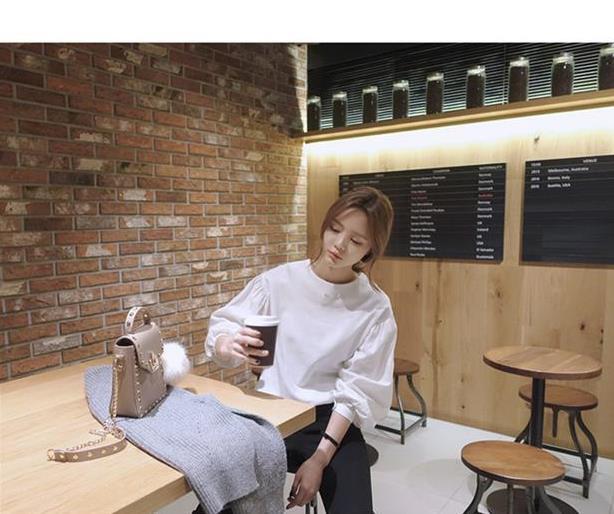 トップス レディース ブラウス 白トップス ホワイト きれいめ シンプル 袖あり 長袖 ボリューム袖 ラウンドネック 襟なし セミフレア こなれ感 着回し オフィス OL 通勤 通学 学生 ママ 10代 20代 30代 40代 大人女子 春 夏 秋 韓国 韓国系 薄手 素材 Sサイズ MサイズLサイズXLサイズ ワンカラー 無地 謝恩会 2次会 母の日 デート お出かけ 公園 休日 旅行 コーデ スタイル 楽チン モテ 定番 プチプラ 安い トレンド 重ね着 普段使い イベント メンズライク