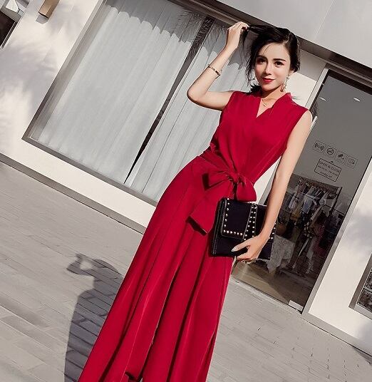 パーティードレス レディース オールインワン ロング丈 パンツスタイル つなぎ ノースリーブ Vネック ブライダル パーティー 結婚式 2次会 お呼ばれ 披露宴 イベント リボン きれいめ シンプル クール ハイウエストリボン 可愛い フェミニン 大人女子 バームレッド ブラック カラーバリエーション Sサイズ Mサイズ Lサイズ メンズライク 10代 20代 30代 女性 女性用 無地 ファッション スタイル 美脚 脚長 プチプラ インスタ映え 安い トレンド 流行 韓国系 存在感 こなれ感 モテ
