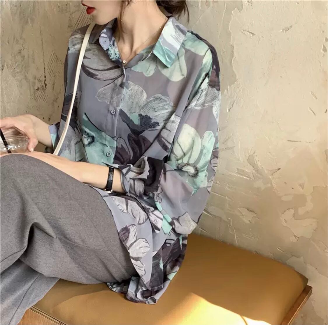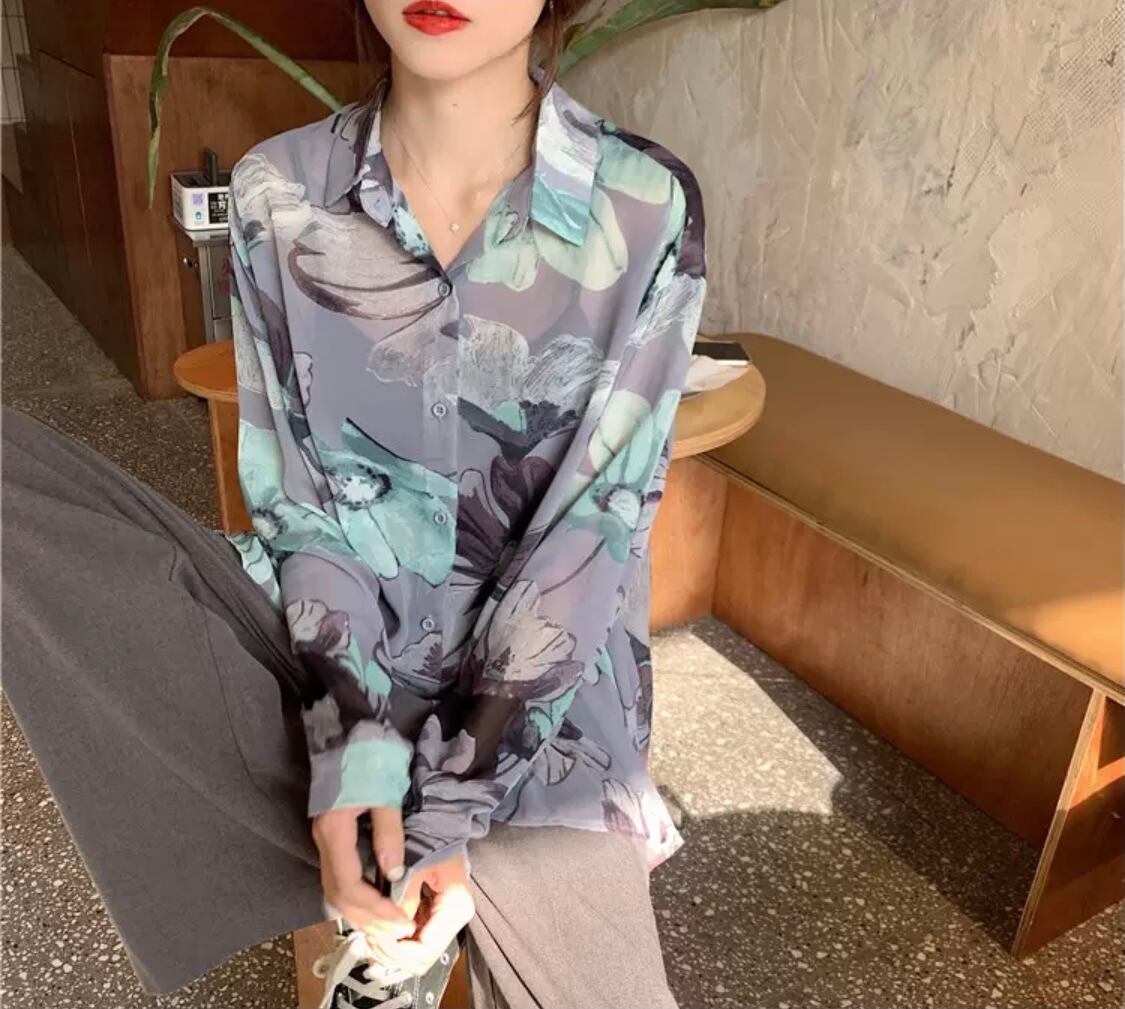 ブラウス レディース シフォンブラウス 長袖 透け感 涼しげ 花柄 イエロー グリーン かわいい 大人可愛い 上品 エレガント 大人っぽい デート お出かけ 女子会 通勤 通学 OL 学生 女性用 婦人服 シースルー 涼しい 春 夏 秋 羽織もの ゆったり 楽ちん オーバーサイズ 抜け感 おしゃれ 送料無料 韓国ファッション インスタ映え フリーサイズ シアー ビッグシャツ 速乾 シワになりにくい アイロンいらず シフォンシャツ 薄手 男ウケ お洒落 トレンドライク マストアイテム コーデ ファッション