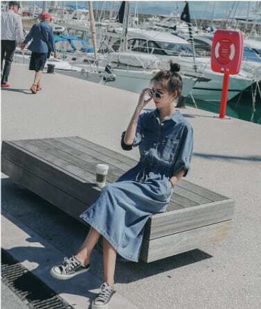 デニムワンピース トップス カジュアル ブルー 青 ミドル丈 袖あり 半袖 襟付き Aライン ボタン ポケット 綿 コットン 大人女子 大人 上品 おしゃれ デイリーウェア レトロ レトロ風 こなれ感 ルーズ シルエット ラフ 個性的 デザイン 主役級 存在感 無地 夏 サマー 20代 30代 40代 レディース 女性用 学生 学校 通学 デート お出かけ 女子会 食事会 休日 おうち らくちん 着回し 普段使い トレンド ファッション コーデ S M L XL