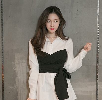シャツ レディース 女性用 トップス ツーピース ビスチェ風 長袖 襟あり 袖あり レース ブラウス スリム ドッキング コットン ミディアム ロング ワンカラー 白シャツ 異素材ミックス バイカラー クール モード系 ストリート おしゃれ 大人系 大人かっこいい 大人きれいめ ペプラム フォーマル カジュアル エレガント 秋 韓国風 オフィススタイル 20代 30代 通勤 OL ビジネス 謝恩会 ストリート お出かけ 休日 母の日 イベント 着回し 楽ちん 体系カバー ファション トレンド