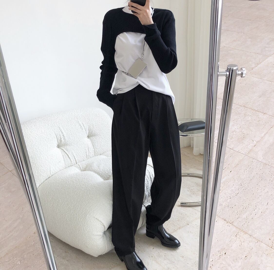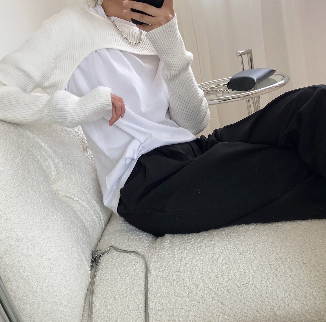 トップス レディース ニットソー ミニ丈 袖あり 長袖 萌袖 ラウンドネック 襟なし スリム タイト 細身 ストレート アシンメトリー リブ リブニット ポリエステル ナイロン ニット 薄手 かわいい きれいめ シンプル おしゃれ お洒落 こなれ感 個性的 モード系 存在感 無地 秋 冬 10代 20代 高校生 大学生 学生 デート お出かけ 女子会 休日 キャンパス 通学 旅行 ショッピング 着回し 重ね着 ファッション コーデ スタイル モテ インスタ映え 韓国 韓国系 白 ホワイト 黒 ブラック