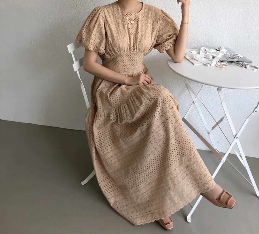 ワンピース パフスリーブ レディース 総パンチングレース シック フランス エレガント 韓国バージョ ンルーズスウィート パフ ブラウンドネック かぎ針編み 大きなスイング ドレス プリンセスワンピース ルーズウエスト Aラインスカート ミドル丈スカート リゾート 旅行 海 メンズライク パーティー女子 高原 海 オーシャン 海外ファッション インポート プチプラ インスタ映え 心地よい ロープライス プレーン カーキ ライトグリーン ホワイト 夏 タイプA ラウンドネック シングル 人気デザイン半袖