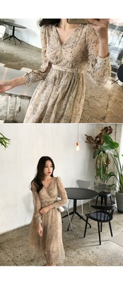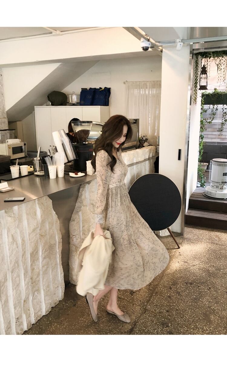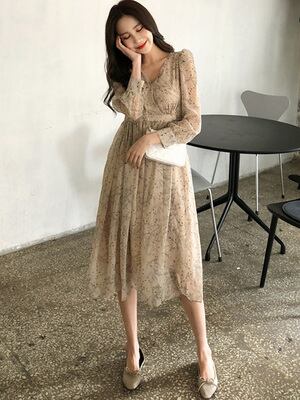 花柄ワンピース 新作春秋デザイン センスニッチ レトロシフォンフローラル フラワー ウエストスリミング ライトマチュアドレス フレンチロングスカート パーティードレス 上品 アプリコットカラー カジュアル ロングスリーブ ホームパーティー 旅行 リゾート 女性らしさアップ 合コン メンズライク デート OL オルチャン 人気ワンピ 体型カバー フレア ワンピ 送料込み プチプラ お得感 大人綺麗 ドレス インスタ映え 20代 30代 40代 50代 清潔感 フォーマル フラワープリント 気品高い