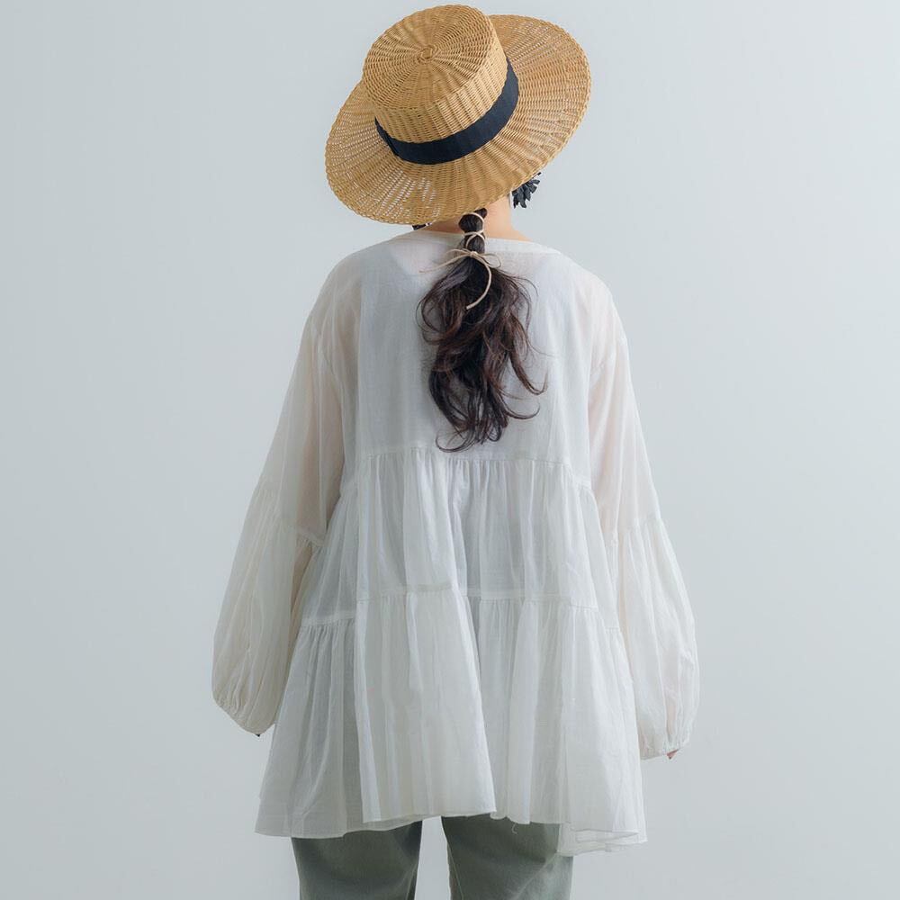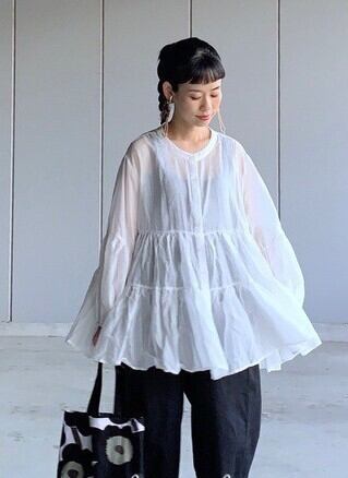 フワフワの袖が可愛い、パフスリーブ 風の短めのシャツワンピです〜♫