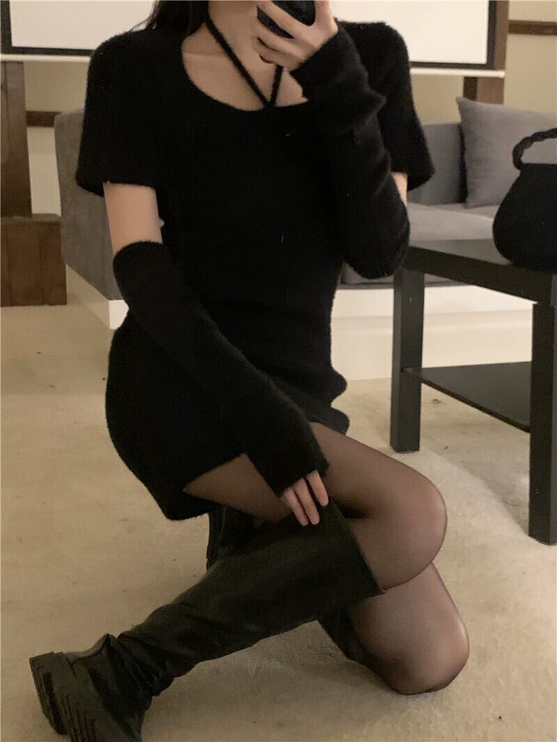 アームカバー付きのセクシーデザイン、ニットワンピースです♪