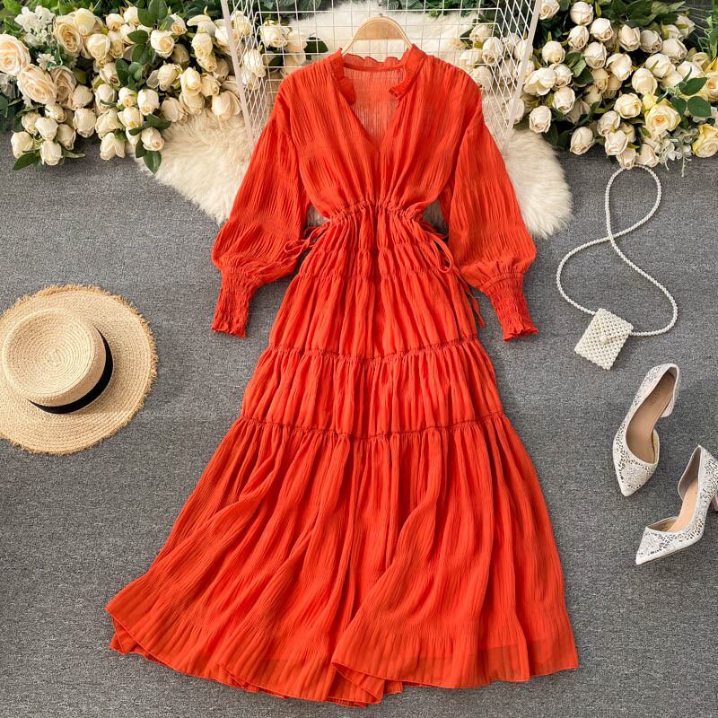 ボヘミアンワンピース Vネック ロング リゾート レース ホリデー ドレス 新しい ファン Vネック ドロー ストリングウエスト ロングスカート フロー ロング裾丈 ミディ リゾートワンピ パーティードレス 外国風 ボリュームアップ オールインワン チャームポイント 送料無料 海外インポート センス抜群 旅行 おしゃれ着 フェミニン 海ワンピ トレンド インスタ映え 着心地 シック おしゃれ着 都会的 着回し 涼しげ 旅行 スタイル 映画スター 長袖 年代問わず カッコよく 大人女子
