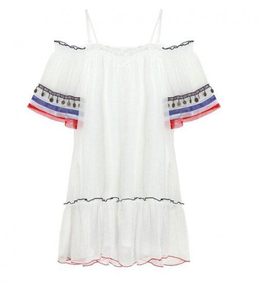 トリコロールカラー×透け感がなんとも可愛い、オフショルワンピース☆彡