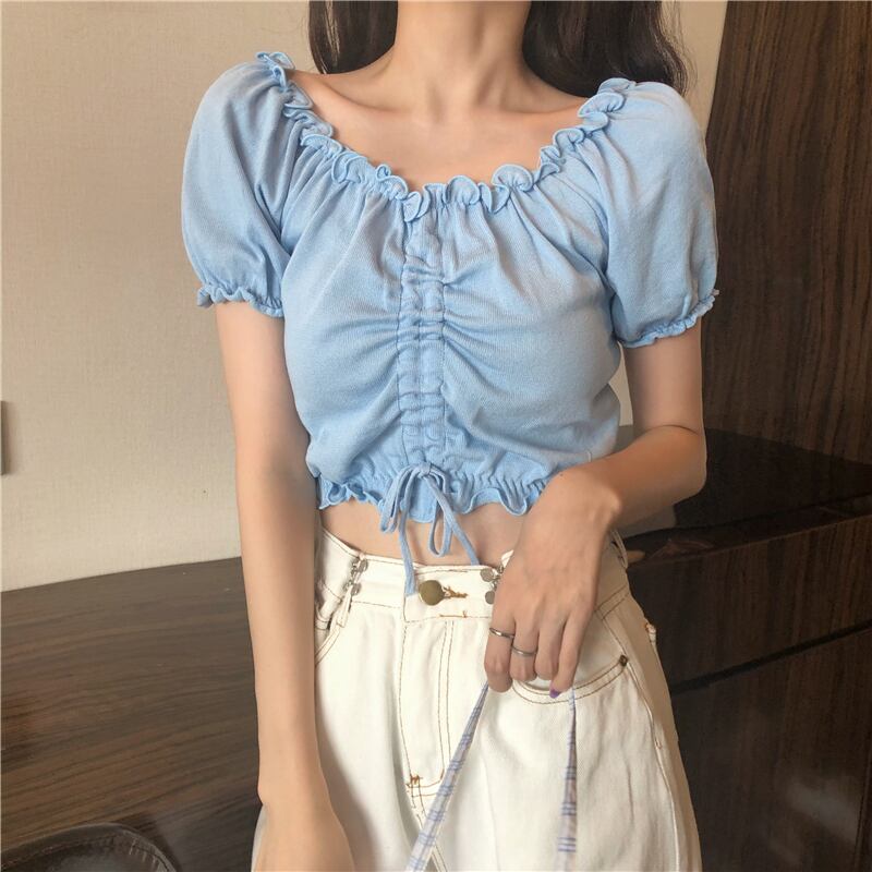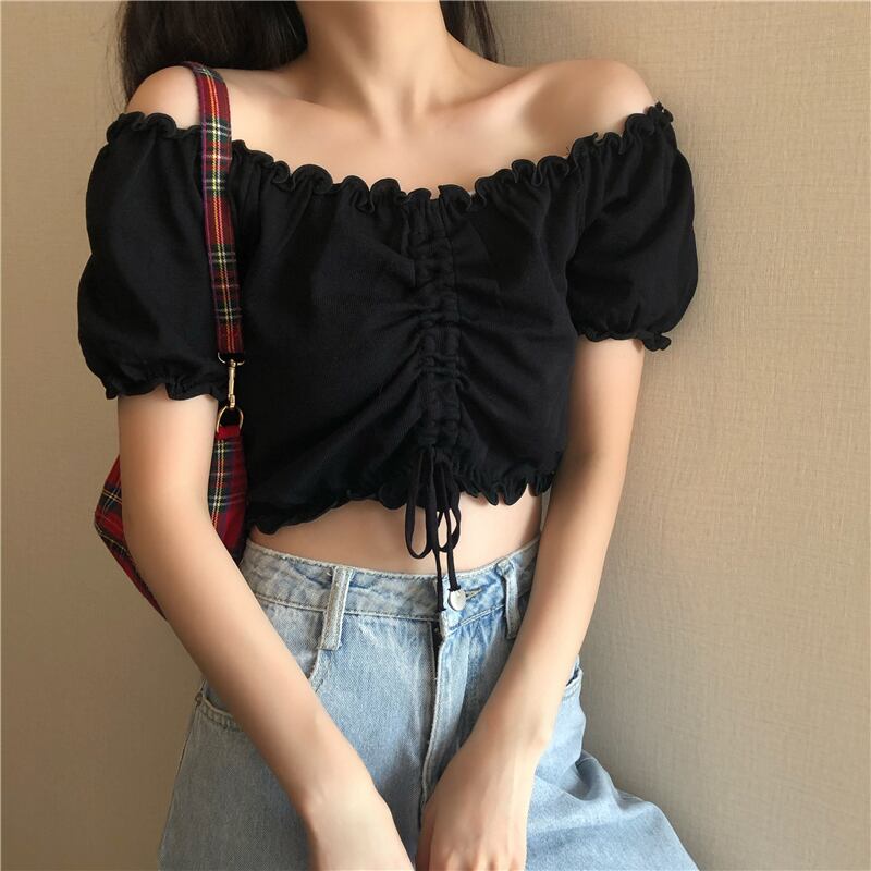 トップス レディース 半袖 オフショルダー ショート丈 へそ出し ラウンドネック リボン セク シー キュート かわいい 大人可愛い カジュアル 上品 スポーティー ヘルシー ホワイト パープル ブルー イエロー ブラック ピンク カラバリ豊富 フリーサイズ フィット感 フェミニン 着痩せ スタイルアップ フロントリボン 送料無料 韓国ファッション インスタ映え 夏 サマー 涼しい レースアップ 美ライン 細見え お揃いコーデ パフスリーブ 10代 20代 30代 学生 通学 2WAY ゴム 伸縮性