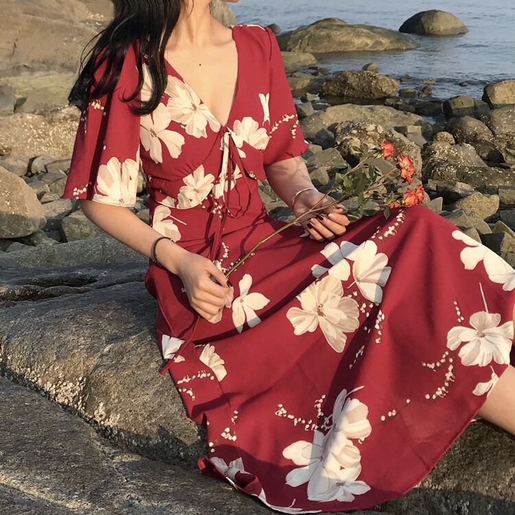 花柄ロングワンピース 情熱的 大胆 リゾート レッド ホワイト フラワープリント 無地 半袖 Vネック ハイウエスト 足長効果 スタイルアップ ひざ下丈 ロング フレア 風 夏 S M 女性 レディース 20・30代 女子 大人女子 女の子 レディ 美しい 綺麗 可愛い 爽やか ゴージャス 女優 サングラス 南国 ハイビスカス 海外旅行 ハワイ バリ トロピカル おでかけ キュート おしゃれ モテ 女子力 デート 友達 パーティ ファッショナブル デザイン ゆったり マタニティ インスタ映え プレゼント