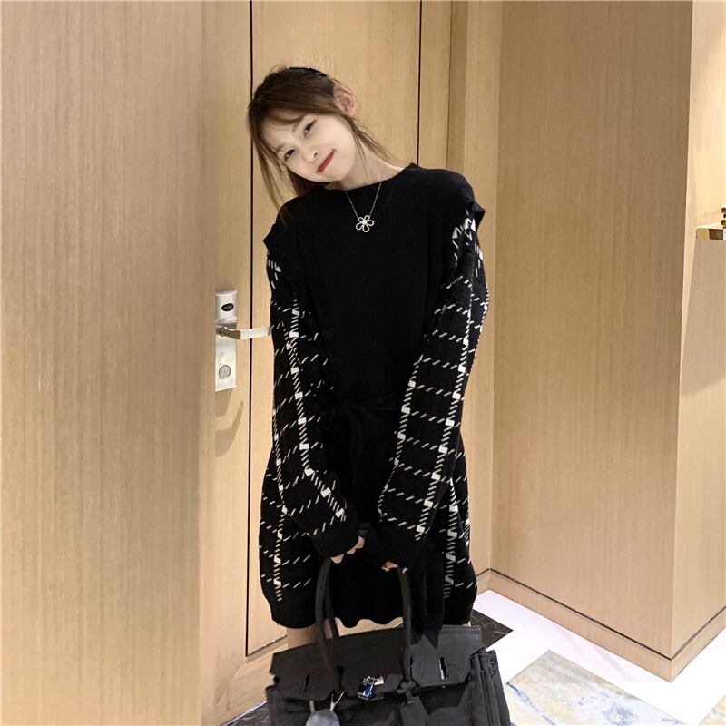 ワンピース レディース 女性用 レイヤード風 チェック柄 ショート丈 ハイネック バイカラー 長袖 袖あり 無地 カジュアル ステッチニット 春 秋 冬 フレンチ 韓国系 ワンカラー ブラック 大きいサイズ ハイウェスト Aライン ミッドスカート かわいい 大人可愛い シンプル ガーリー ストリート エレガント きれいめ 上品 フォーマル 10代 20代 30代 ママ 謝恩会 オフィス ビジネス 通勤 通学 学生 OL 女子会 イベント パーティ リクルート お出かけ 休日 モテ インスタ映え トレンド
