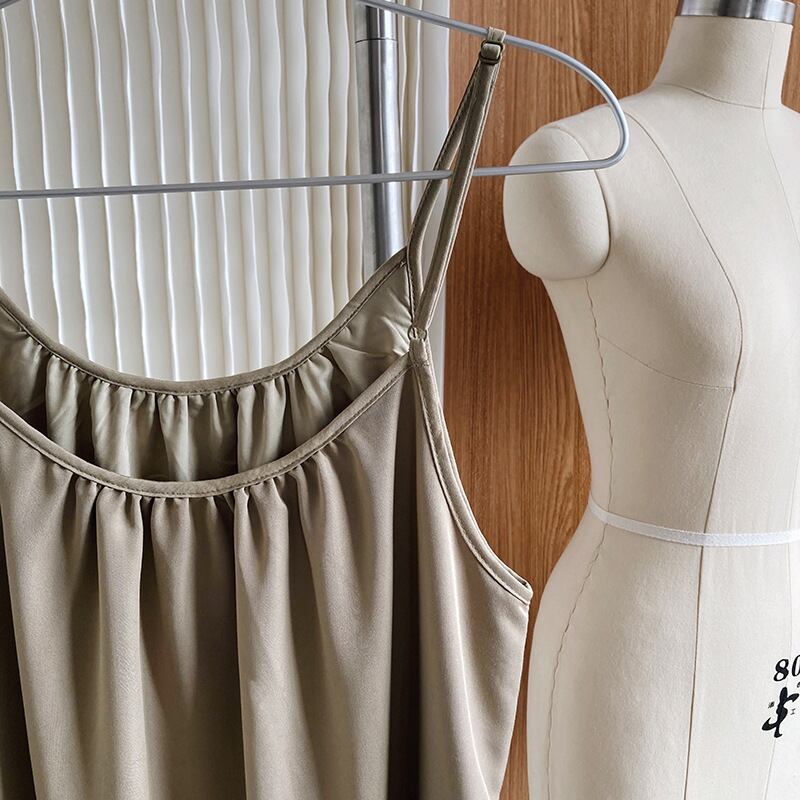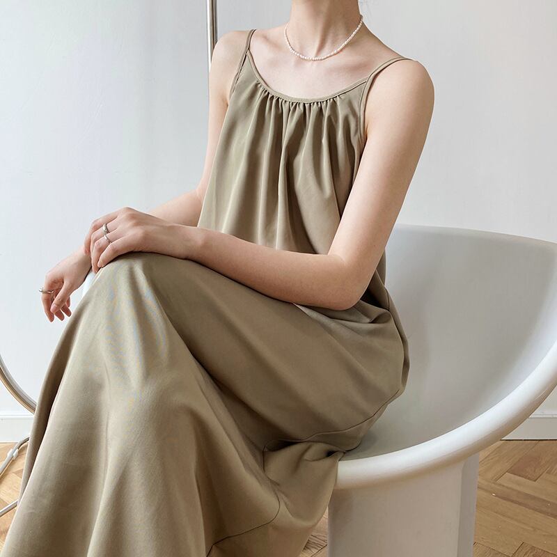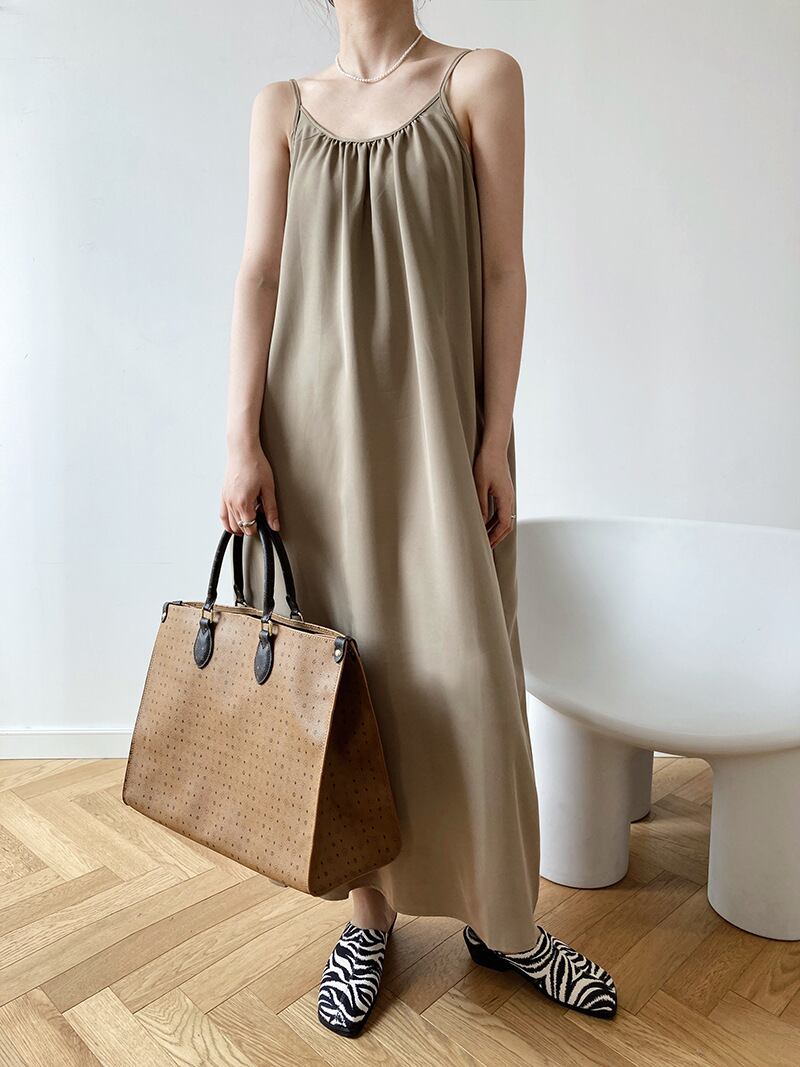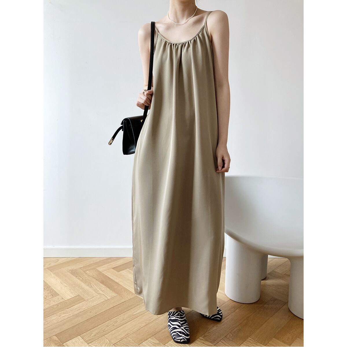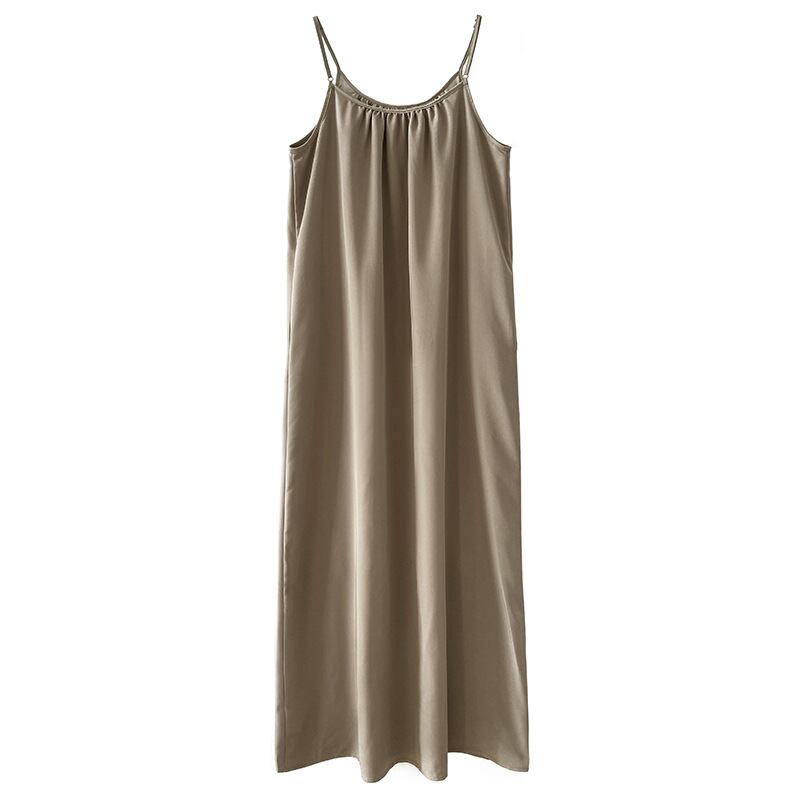 ロングワンピース 無地 ベージュ ブラック ラウンドネック キャミソール 襟元 プリーツ 大人気 定番 使いやすい 裏地 ポケット付き 美しいドレープ ひざ下 ロング丈 スカート 光沢 夏 涼しい M L ゆったり ふんわり 動きやすい 女性 レディース 20代 30代 40代 女性 レディ 魅力的 ヌーディ セクシー おしゃれ カジュアル おでかけ お買い物 カフェ ランチ ディナー 女子会 友達 ママ友 デート 昼 お散歩 清潔感 ファッショナブル ハイセンス デザイン プレゼント マタニティ