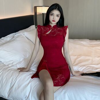 ミニ丈のノースリーブのタイトなチャイナドレスです。