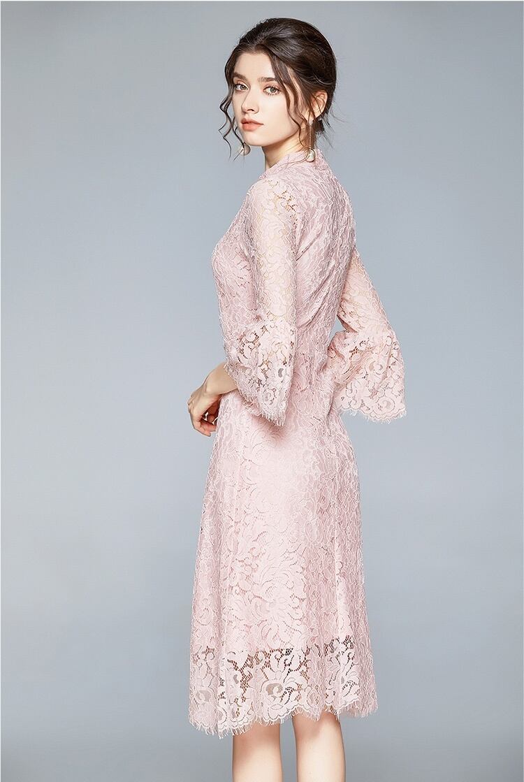 ワンピース チャイナワンピース 膝丈 ひざ丈 膝下 ひざ下 袖あり 7分袖 七分袖 トランペットスリーブ ベルスリーブ ハイネック セミフレア Aライン レース ウエストマーク 透け感 シースルー 大人可愛い きれいめ 大人 上品 おしゃれ お洒落 アジアン 大人可愛い 大人女子 こなれ感 エレガント チャイナ オールシーズン 20代 30代 40代 デート お出かけ パーティー イベント ホテル ガーデン レストラン ファッション スタイル モテ S M L XL 2XL ピンク ライトブルー