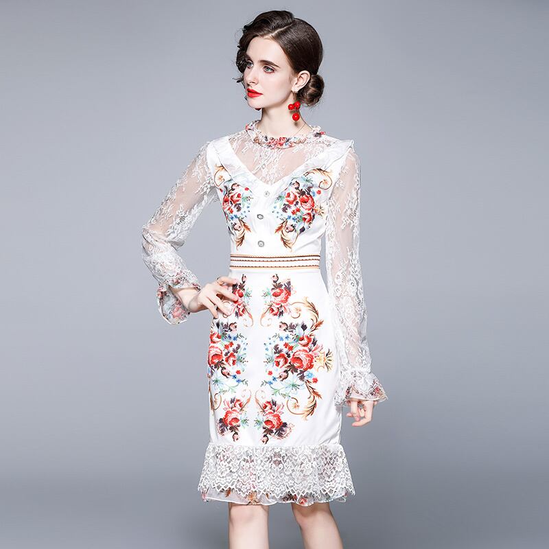 ワンピース 膝丈ワンピース 膝丈 ひざ丈 膝上 ひざ上 袖あり 長袖 パフスリーブ クルーネック 襟なし スリム タイト 細身 Iライン レース ウエストマーク 透け感 シースルー 大人可愛い きれいめ 大人 上品 おしゃれ お洒落 レトロ 大人可愛い 大人女子 こなれ感 エレガント フェミニン 花柄 春 夏 秋 謝恩会 20代 30代 40代 デート お出かけ パーティー イベント ホテル ガーデン レストラン ファッション コーデ スタイル モテ インスタ映え M L XL 2XL 白 ホワイト