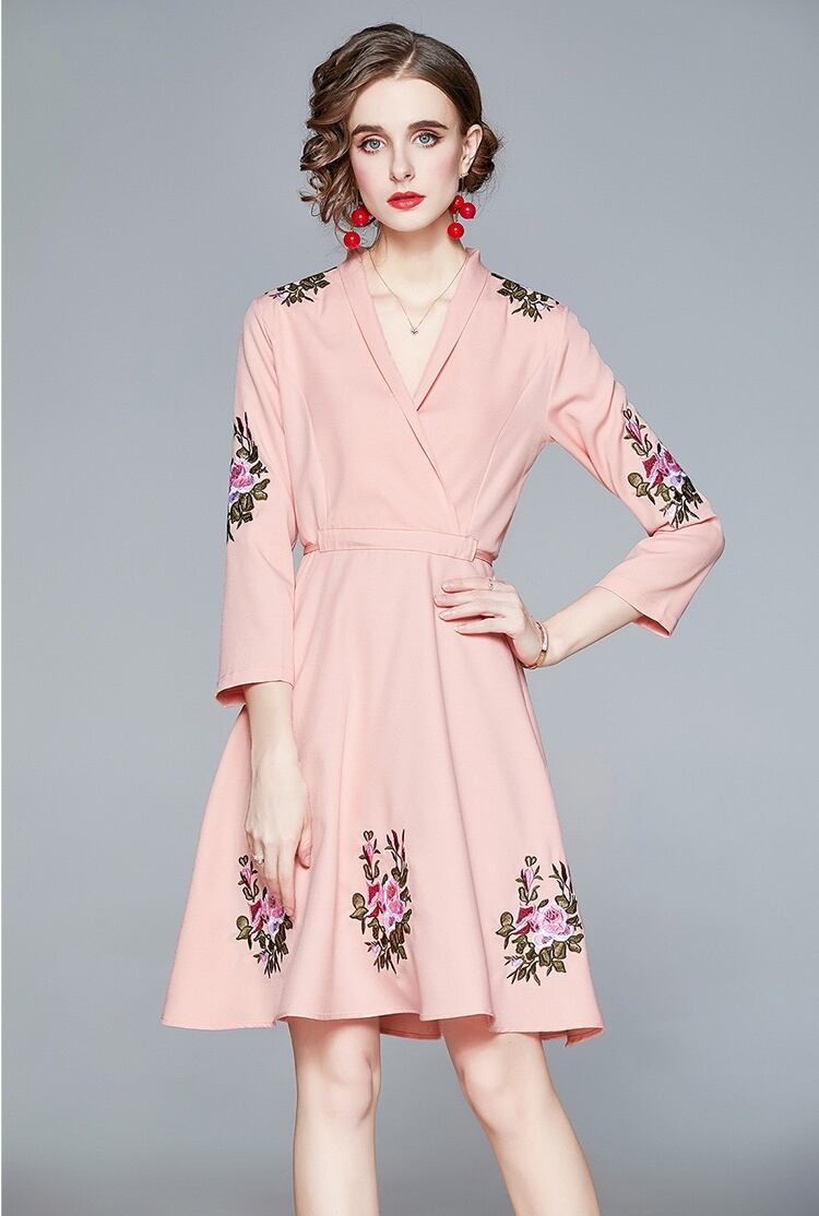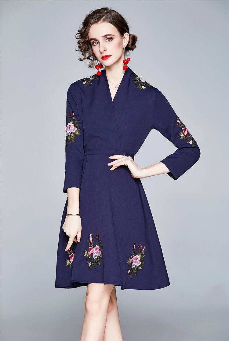 ワンピース 膝丈ワンピース 膝丈 ひざ丈 膝上 ひざ上 袖あり 7分袖 七分袖 Vネック 襟なし ショールカラー フレア Aライン 刺繍 ウエストマーク ウエストリボン バックリボン 綿 かわいい 大人可愛い きれいめ 大人 上品 おしゃれ お洒落 レトロ 大人可愛い 大人女子 こなれ感 エレガント 花柄 フラワー 春 秋 謝恩会 20代 30代 40代 デート お出かけ 女子会 パーティー イベント ホテル ガーデン レストラン ファッション コーデ スタイル モテ M L XL 2XL 青 ピンク
