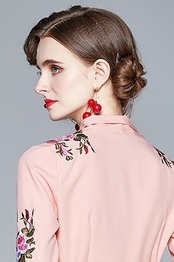 肩や袖、裾に入っているお花の刺繍がエレガントです♪