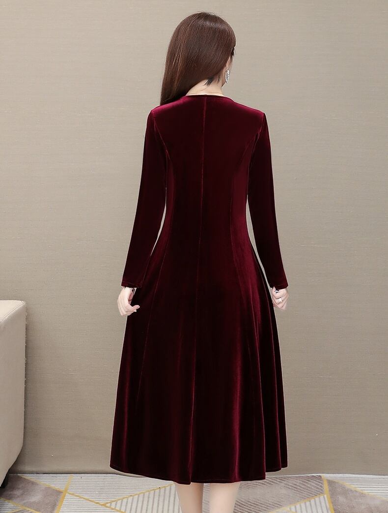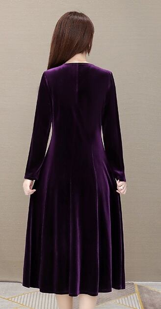 ワンピース ロングワンピース ロング ロング丈 袖あり 長袖 ラウンドネック 襟なし フレア Aライン ファスナー 後ろチャック 後ろファスナー ベロア きれいめ シンプル 大人 上品 おしゃれ お洒落 レトロ 大人可愛い 大人女子 こなれ感 エレガント モダン 無地 秋 冬 謝恩会 20代 30代 40代 デート お出かけ 女子会 パーティー イベント ホテル レストラン XL 2XL 3XL 4XL 5XL 大きいサイズ 大きめ ゆったり ゆる 紫 パープル ワインレッド 秋カラー ピーコックブルー