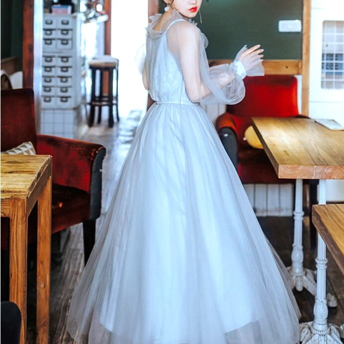 ワンピース レディース 女性用 チュール フリル ボリューム袖 マキシ Uネック 袖あり 長袖 ロングスリーブ 無地 プリンセスドレス ハイウェスト Aライン ロングスカート シフォン ワンピドレス かわいい 大人可愛い きれいめ 上品 カジュアル ガーリー キュート ラブリー エレガント モダン 存在感 10代 20代 ママ 謝恩会 母の日 誕生日 オフィス パーティー イベント お出かけ 休日 カフェ 女子会 デート 記念日 モテ トレンド インスタ映え 韓国系 ギフト プレゼント おしゃれ 新着