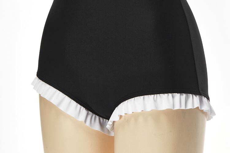 メイド風水着 プリーツスカート付 胸元 レースアップ リボン 袖元 バック フリル パッド付 ブラック×ホワイト ウエストマーク ハイウエスト スタイルアップ◎ 足長効果 夏 水着 スリム 最新 トレンド 大人気 M L XL XL 女性 レディース セクシー キュート ラブリー 華奢 可憐 可愛い 10代 20代 女の子 女子 流行 おしゃれ スクール水着風 海 プール 夏休み 旅行 バカンス 長期休暇 おでかけ 海外 友達 デート 韓国 アジア オルチャン ファッショナブル デザイン インスタ映え
