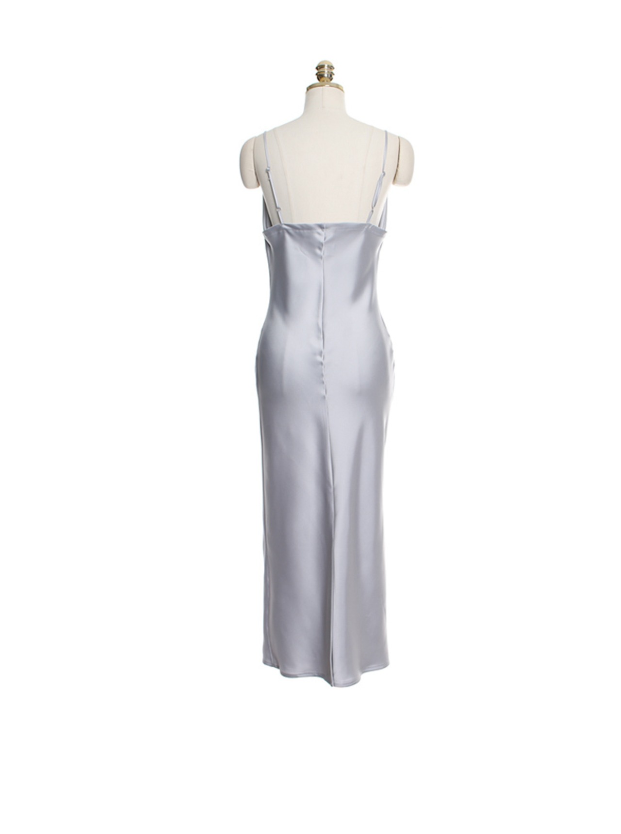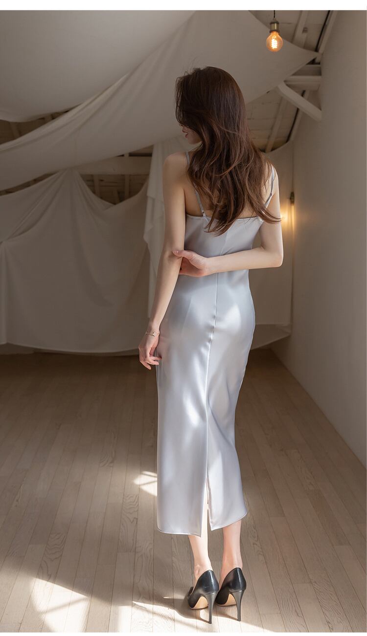 キャミワンピース ロングドレス 爽やか落ち着きカラー 光沢 サテン スモーキーグレー 無地 夏 冬 インナードレス 重ね着 Vネック~スクエアネック ウエストマーク Sライン 足長効果 細見せ スリム S M L XL 人気 流行 女性 レディース 20・30代 大人女子 レディ 美女 女神 天使 お姉さん ヌーディ 美脚 魅惑 綺麗 可愛い 上品 洗練 セクシー おしゃれ モテ 女子力 イベント パーティ 気分アップ アジアンビューティー 海外モデル デート ハイファッション インスタ映え プレゼント