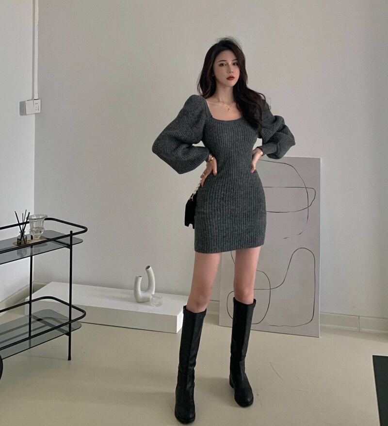 ニットワンピース ワンピース ミニ ミニ丈 膝上 長袖 ボリューム袖 スリム タイト 細身 Iライン スマート ハイウエスト かわいい 大人可愛い きれいめ 大人 上品 おしゃれ お洒落 大人可愛い 大人女子 キュート ガーリー セクシー エレガント 主役級 存在感 フォーマル 無地 春 秋 冬 10代 20代 30代 40代 レディース 女性用 ママ 女の子 オフィス OL デート お出かけ 女子会 お泊まり 休日 パーティー イベント ホテル レストラン 韓国 韓国系 ファッション コーデ スタイル