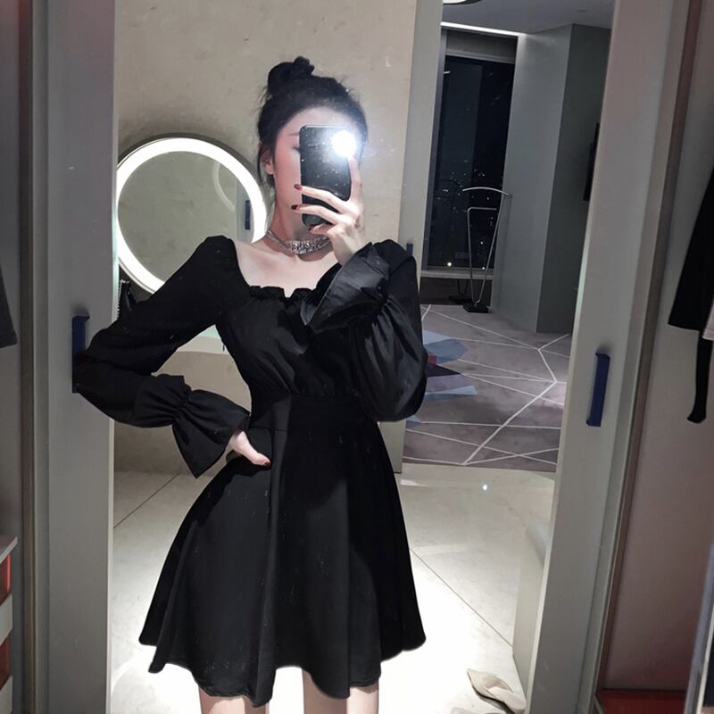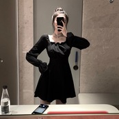 バック レースアップ ブラックワンピース ショートドレス 背中空き フレアワンピース ブラック×ホワイト バックリボン ウエストマーク ハイウエスト 足長効果◎ ショート丈 白黒 ロングスリーブ スクエアネック 絞り 大人気 流行 トレンド スリム 春 夏 秋 S M 女性 レディース 20代 セクシー おしゃれ 可愛い キュート ラブリー 大胆 小悪魔 クラブ カラオケ ダンス ネオン 夜景 ドライブ 彼氏 デート 友達 女子会 お揃い 韓国 オルチャン ハイファッション プレゼント インスタ映え 話題