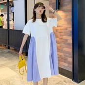 ワンピース バイカラー 半袖 フレア ストライプ Aライン マタニティ妊婦 夏 洋服 ヒットカラー 涼し気 サマー 完結 ランキング 人気商品 ファッショナブル ロングスカート ミドル ロング丈 使い勝手 着回し 大人気 定番 ウエストマーク 春 夏 秋 ふんわり ゆったり カジュアル 動きやすい レディース 20代 30代 40代 女性 オフィス OL風 シンプル おしゃれ 可愛い おでかけ お散歩 買い物 カフェ ランチ 女子会 友達 ママ友 デート 快適 機能的 ファッショナブル