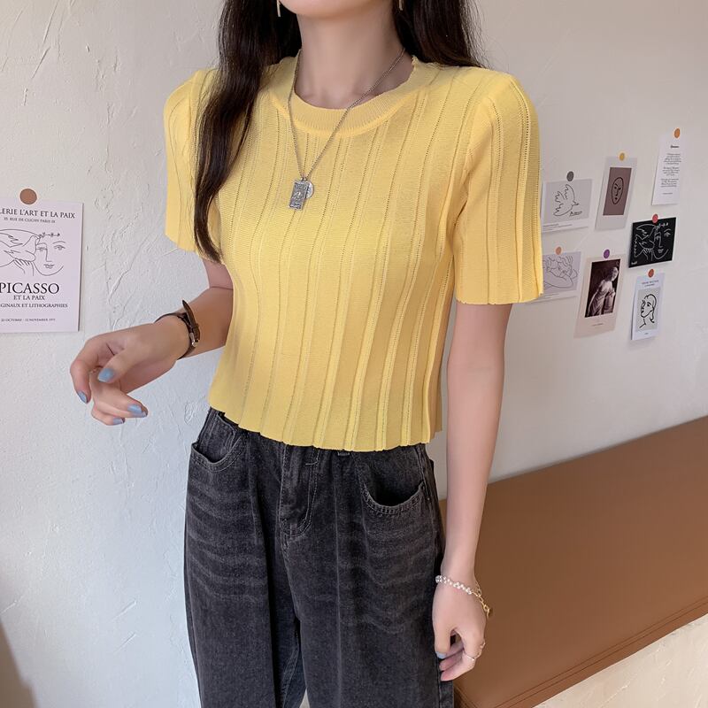 トップスデイリーショート丈サマー半袖ニット 4color クリアランス 無地 半袖ニット Tシャツ レディース 夏 新作服 インウェーブデザイン リブカーディガン 4色 ワンサイズ レディース ゆったり アウター ウェア スモールジャケット 女性 夏 韓国 サンプロテクションシャツ タイドニットソー ミニ丈 ラウンドネック 襟なし スリム タイト 細身 ストレート リブニット かわいい きれいめ シンプル おしゃれ お洒落 こなれ感 個性的 モード系 無地 通学 旅行 ショッピング 着回し 重ね着