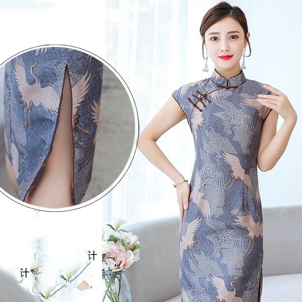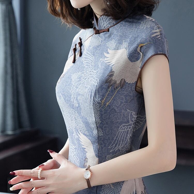 鶴のプリントが大人の綺麗さを演出し、魅力的な仕上がりに。