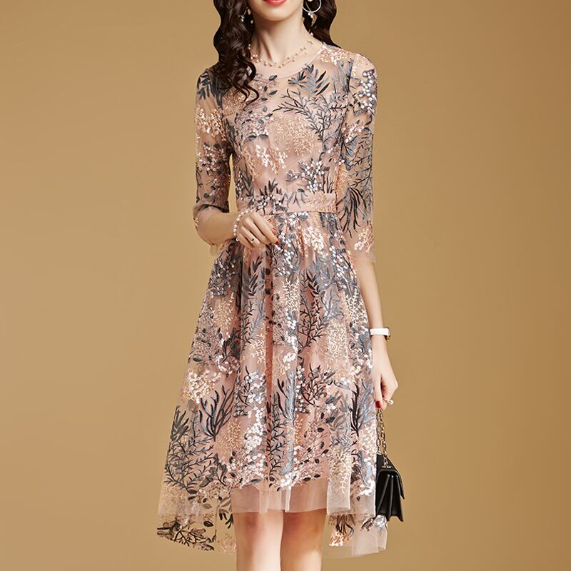 ワンピドレス レディース 女性用 ワンピース Aライン 刺繍 メッシュ レース ミッドスリーブ フラワー柄 Uネック 7分丈 ミディアム ラウンドネック ミディアム丈 大人可愛い かわいい 上品 きれいめ おしゃれ アジアン 大人女子 ラブリー ガーリー 主役級 存在感 エレガント モダン フォーマル 大人カラー 春 夏 謝恩会 入学式 入園式 卒業式 卒園式 結婚式 二次会 披露宴 誕生日 通勤 OL 学生 イベント オフィス パーティー デート 記念日 女子会 リクルート トレンド モテ 脚長 定番