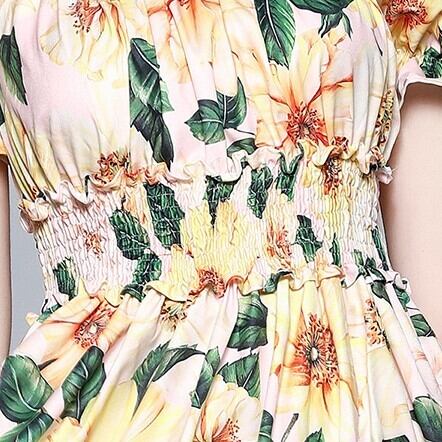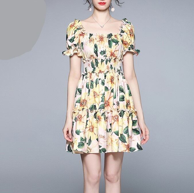 ワンピース フラワープリント ミディ 半袖 フレアスリーブ レディースファッション オールインワン スカート M L XL 2XL パフスリーブ ワンピースオールインワン フレア エレガントスタイル フレアスカート バイカラー カジュアル ストリートファッショナブルvインポートファッションv海外v旅行vイベントvアウトドア リゾート ディナー 人気 ラブリー おとなかわいい おススメ ランキング個性インスタ映え10代 20代 学生 通学 デート お出かけ 女子会 休日 パーティー イベント モテ