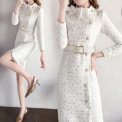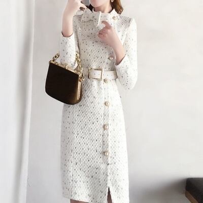ワンピースレディース オールインワン タイトスカート 膝上 袖あり 長袖 クルーネック 襟付き タイト 細身 ストレート Iライン ベルト かわいい 大人可愛い きれいめ 大人 上品 おしゃれ お洒落 大人可愛い 大人女子 こなれ感 個性的 クール エレガント モダン 主役級 存在感 フォーマル 白 ホワイト 無地 秋 冬 結婚式 二次会 披露宴 20代 30代 オフィス ビジネス OL デート 韓国 韓国系 オルチャン ファッション コーデ スタイル モテ 美脚 脚長 新作 トレンド インスタ映え