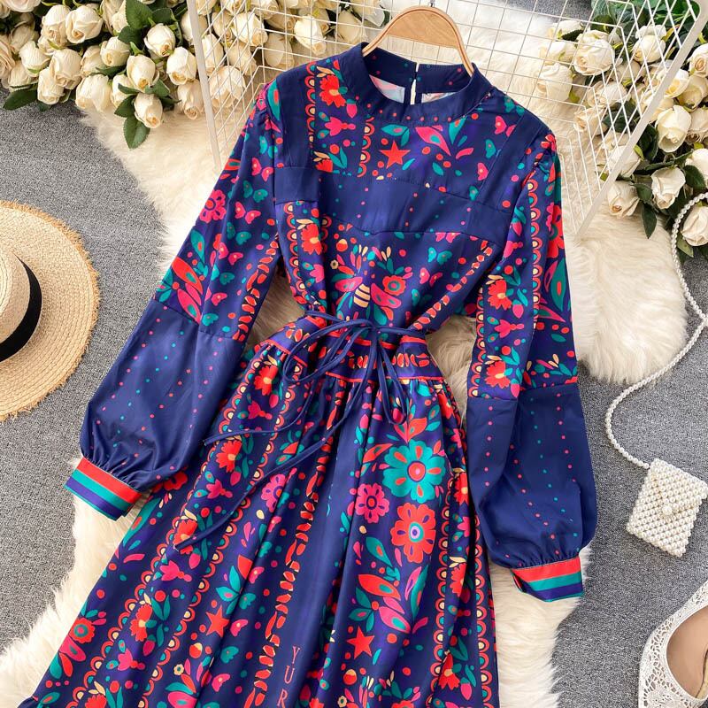 ワンピース レディース フレアワンピース ワンピドレス ロング ロング丈 袖あり 長袖 ボリューム袖 クルーネック フレア Aライン 裾フレア シフォン フリル 伸縮性 かわいい 大人可愛い 大人 おしゃれ お洒落 大人可愛い 大人女子 こなれ感 ラブリー 個性的 主役級 存在感 ブラック ネイビー アプリコット 柄 春 夏 2021 お出かけ 女子会 リゾート 旅行 海 韓国 オルチャン ファッション コーデ スタイル モテ 体系カバー プレゼント 新作 送料無料 トレンド 流行 インスタ映え