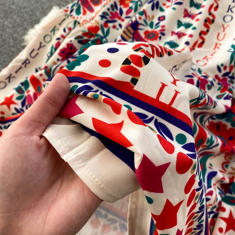 ふわふわの裾がオシャレなマルチ柄ワンピース♪