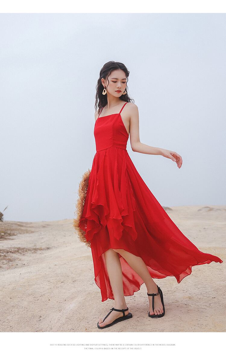 パーティードレス エレガント ワンピース ロングスカート不規則 レッド 赤 サスペンダードレス 妖精 ビーチスカート 海辺 休暇 人気 セレブ 痩身 ミドル丈 スプリット レースドレス オールインワン 大人可愛い 透け感 大人 上品 おしゃれ お洒落 大人可愛い 大人女子 こなれ感 個性的 クール エレガント モダン 主役級 存在感 フォーマル 無地 秋 冬 結婚式 二次会 ディナー 披露宴 デート 韓国 インポート海外オルチャン ファッション コーデ スタイル 特別 脚長 ジュアリー セクシー