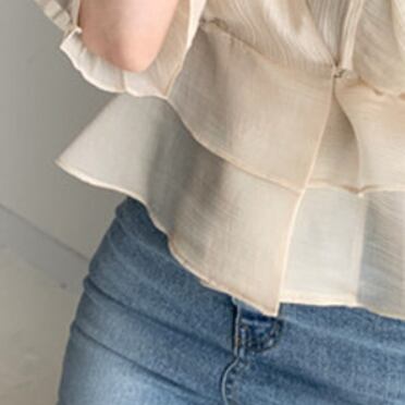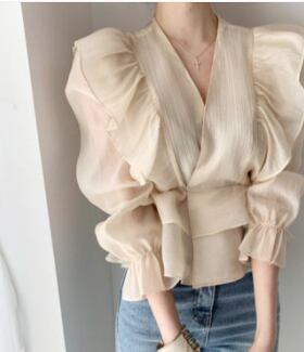 Vネックシフォンシャツ 人気デザイン トップス ブラウス フェミニン アプリコット ショート丈 袖あり 半袖 Vネック スリム 細身 タイト フリル 外国デザイン 乙女 大人女子 透け感 シースルー 大人女子 大人 上品 おしゃれ きれいめ シンプル エレガント レトロ レトロ風 こなれ感 ラフ 個性的 デザイン 主役級 存在感 無地 ライン 春 スプリング 20代 30代 40代 レディース 女性用 オフィス ビジネス OL デート お出かけ 女子会 着回し 普段使い トレンド ファッション コーデ