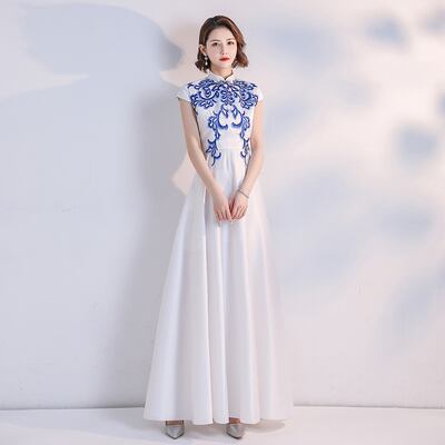 ドレス レディース dress 衣装 ワンピース パーティードレス ロングドレス Aラインドレス ロング ロング丈 袖なし ノースリーブ ラウンドネック 刺繍 シフォン フリル フォーマル エレガント かわいい 大人可愛い きれいめ ゴージャス 華やか 大人 上品 おしゃれ お洒落 主役級 存在感 チャイナ風 アジアン S M L XL 2XL 3XL 4XL ホワイト レッド 柄 パーティー 20代 30代 韓国 韓国系 オルチャン ファッション コーデ スタイル 高見え トレンド インスタ映え