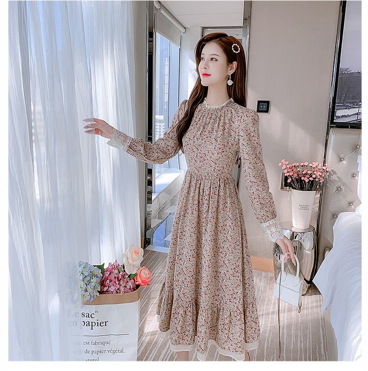 レディース ワンピース フレアスカート ミモレ ミモレ丈 袖あり 長袖 ラウンドネック フレア Aライン レース シフォン フリル かわいい 大人可愛い きれいめ 大人 上品 おしゃれ お洒落 大人可愛い 大人女子 こなれ感 ラブリー キュート ガーリー 抜け感 くすみカラー 大人カラー 柄 花柄 小花柄 春 夏 2021 20代 30代 デート お出かけ 公園デビュー 女子会 韓国 韓国系 オルチャン ファッション コーデ スタイル モテ プレゼント ギフト トレンド 流行 インスタ映え