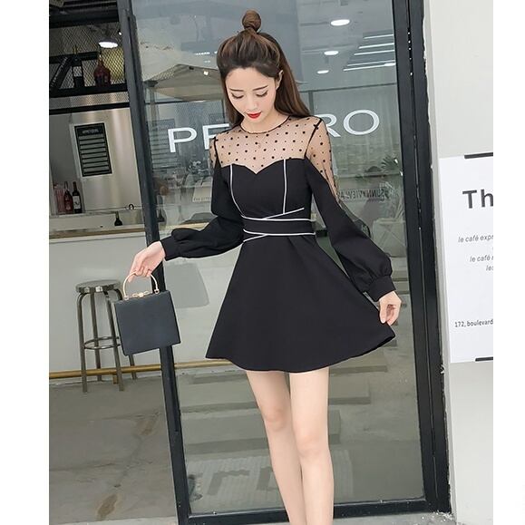 ワンピース レディース ワンピース ミニ ミニ丈 袖あり 長袖 ラウンドネック セミフレア 細身 Aライン 切り替えデザイン 裾フレア ハイウエスト シフォン 透け感 かわいい 大人可愛い きれいめ 大人 上品 おしゃれ お洒落 キュート 個性的 セクシー フォーマル S M L XL 黒 ブラック 赤 レッド 柄 夏 2021 20代 30代 デート お出かけ パーティー イベント 韓国 韓国系 オルチャン ファッション コーデ スタイル モテ 美脚 プレゼント 新作 トレンド 流行 インスタ映え