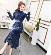 アコーディオンプリーツがきれいなベルベットのワンピースです。