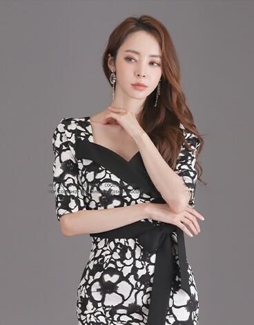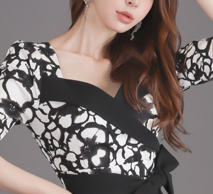 ワンピース レディース ペンシル スカート タイト スカート ワンピドレス モテ インスタ映え 脚長 美脚 オルチャン スタイル コーデ 韓国系 イベント パーティー オフィス 通勤 OL お出かけ デート 20代 柄 花柄 フラワー ハイウエスト モノトーン 存在感 主役級 エレガント セクシー 大人女子 大人可愛い かわいい おしゃれ 上品 5分袖 きれいめ バックスリット スリット ウエストリボン ウエストマーク リボン Iライン ストレート 細身 スリム Vネック 半袖 袖あり 膝下 ミモレ丈