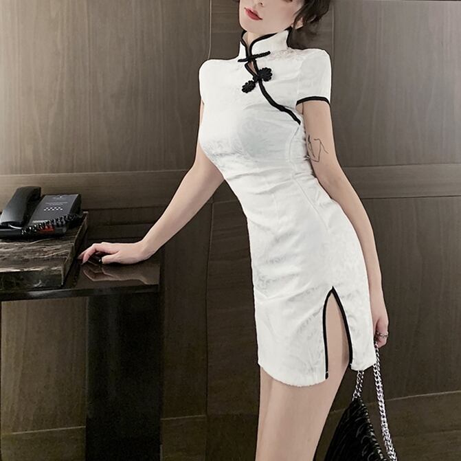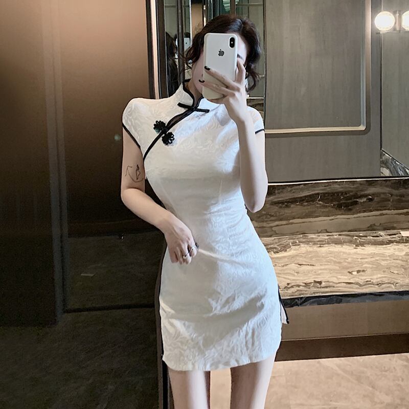 ミニ丈チャイナドレス ワンピース ドレス ミニ ミニ丈 袖あり 半袖 ハイネック スリム タイト 細身 ストレート スリット 大人スタイル チャイナドレス 大人可愛い きれいめ 大人 おしゃれ アジアン エキゾチック 大人女子 個性的 クール セクシー エレガント 主役級 存在感 柄 春 夏 誕生日 謝恩会 結婚式 二次会 披露宴 ハロウィン 10代 20代 30代 40代 レディース ママ 女の子 お出かけ パーティー イベント 着回し スタイル モテ S M L サイズ コンパクト タイトデザイン
