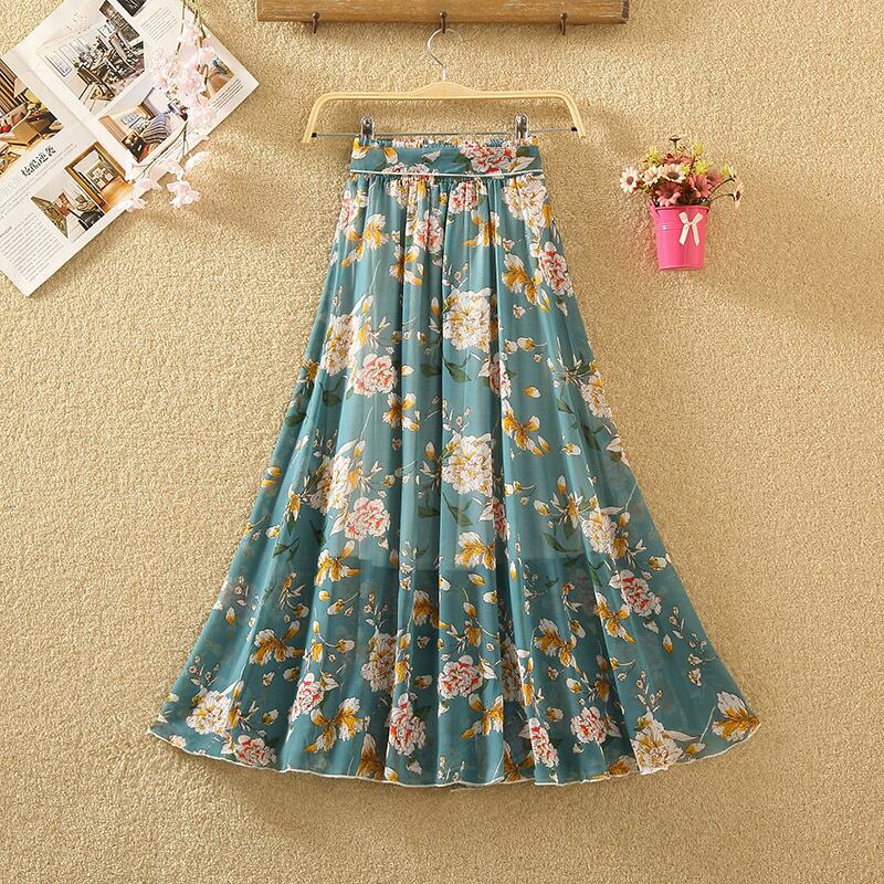 おしゃれなシフォン花柄フレアロングプリントスカート♪