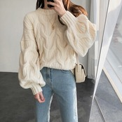程よいボリュームがお洒落なケーブルニットセーターです。