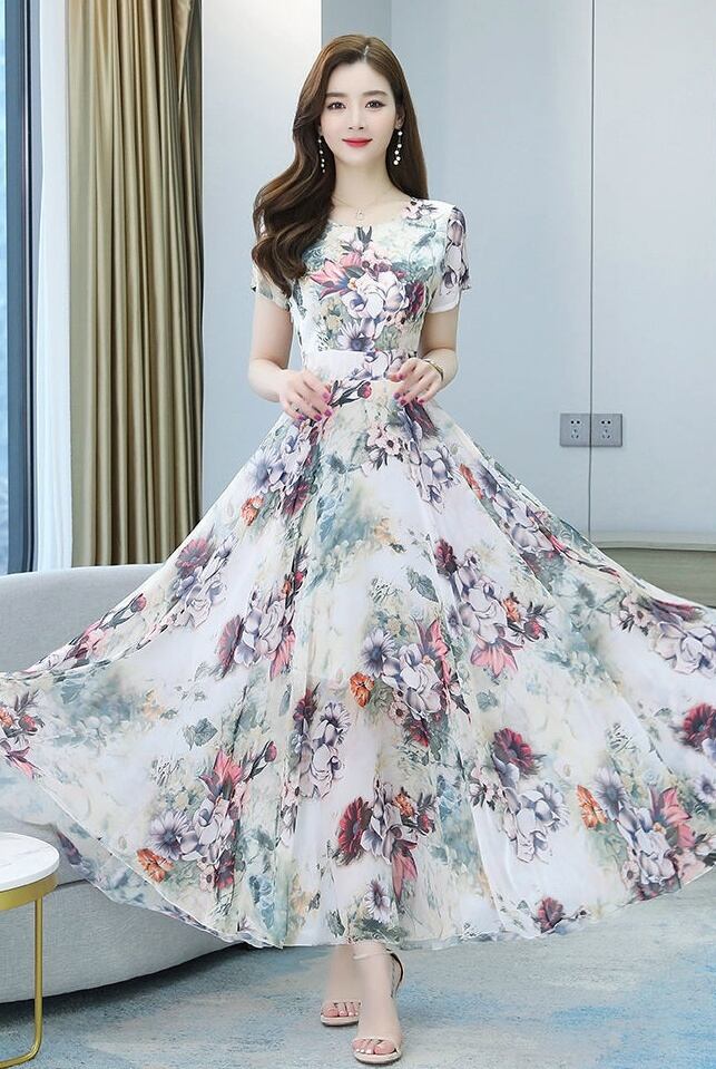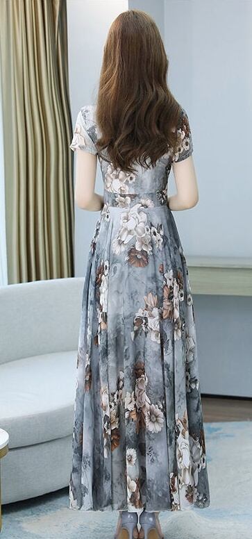 ワンピース レディース ワンピドレス ロング丈 ロング 袖あり ラウンドネック パーティー リゾート インスタ映え 脚長 美脚 モテ スタイル コーデ ファッション 韓国系 韓国 旅行 海 20代 30代 デート お出かけ 女子会 休日 エレガント プリント 披露宴 二次会 夏 柄 花柄 フラワー くすみカラー 灰色 グレー 白 ホワイト とろみ感 存在感 主役級 セクシー 大人女子 上品 大人きれいめ かわいい 大人可愛い ウエストマーク 襟なし 細身 プリーツ Aライン フレア ハイウエスト 透け感