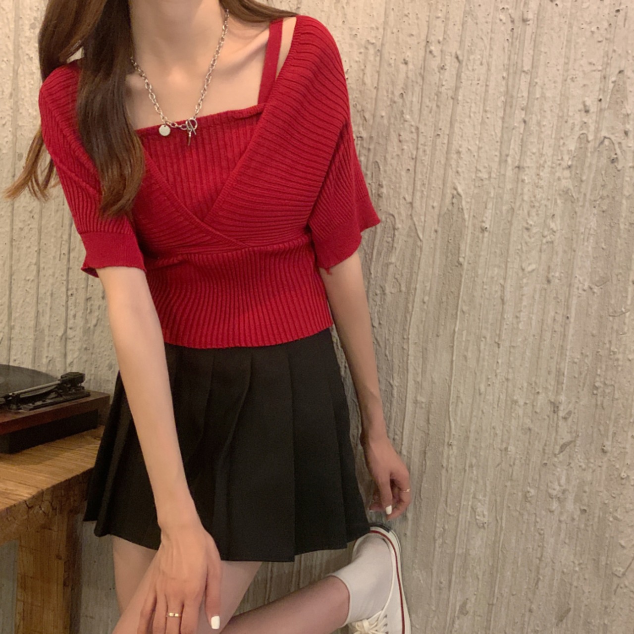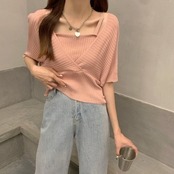 レディース トップス ニット セーター 袖あり 5分袖 スクエアネック スリム 細身 ストレート 切り替えデザイン 伸縮性 かわいい 大人可愛い きれいめ シンプル カジュアル 上品 おしゃれ お洒落 大人可愛い 大人女子 S M L XL ホワイト ブラック レッド ピンク イエロー 無地 夏 2021 20代 30代 オフィス ビジネス OL 通勤 学生 通学 デート お出かけ 休日 着回し 普段使い 韓国系 オルチャン ファッション コーデ スタイル 楽ちん 新作 トレンド 流行 インスタ映え
