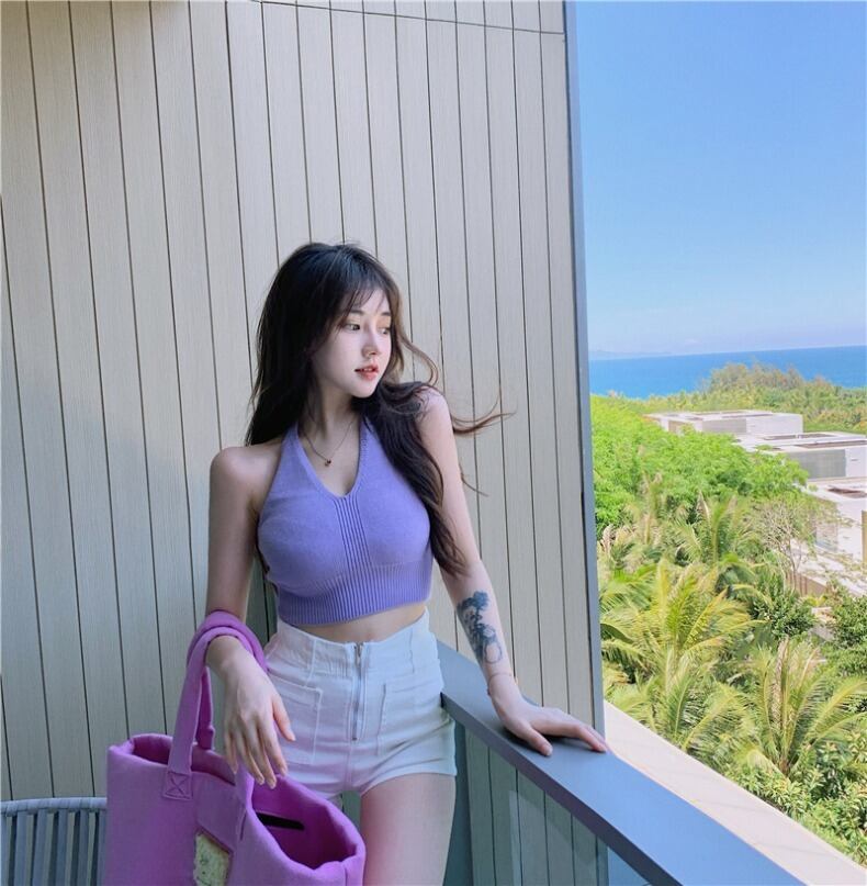 トップス サマーニット Vネックホルダー 人気 ホットガール ベスト 大人可愛い 大人系 Vネック 10代 20代 おしゃれ セクシー 大人女子 黒 青 水色 白 紫 美女 美人 綺麗 上品 かわいい キュート シンプル ガーリー 女性用 2021年 夏 インスタ映え SNS映え ブルー ブラック パープル ホワイト ホルターネック 伸縮性あり 夏服 韓国 韓国系 韓国アイドル K-POPアイドル ファッション 無地 トレンド 流行 新作 学生 通学 デート カジュアル 普段使い コーデ スタイル 定番